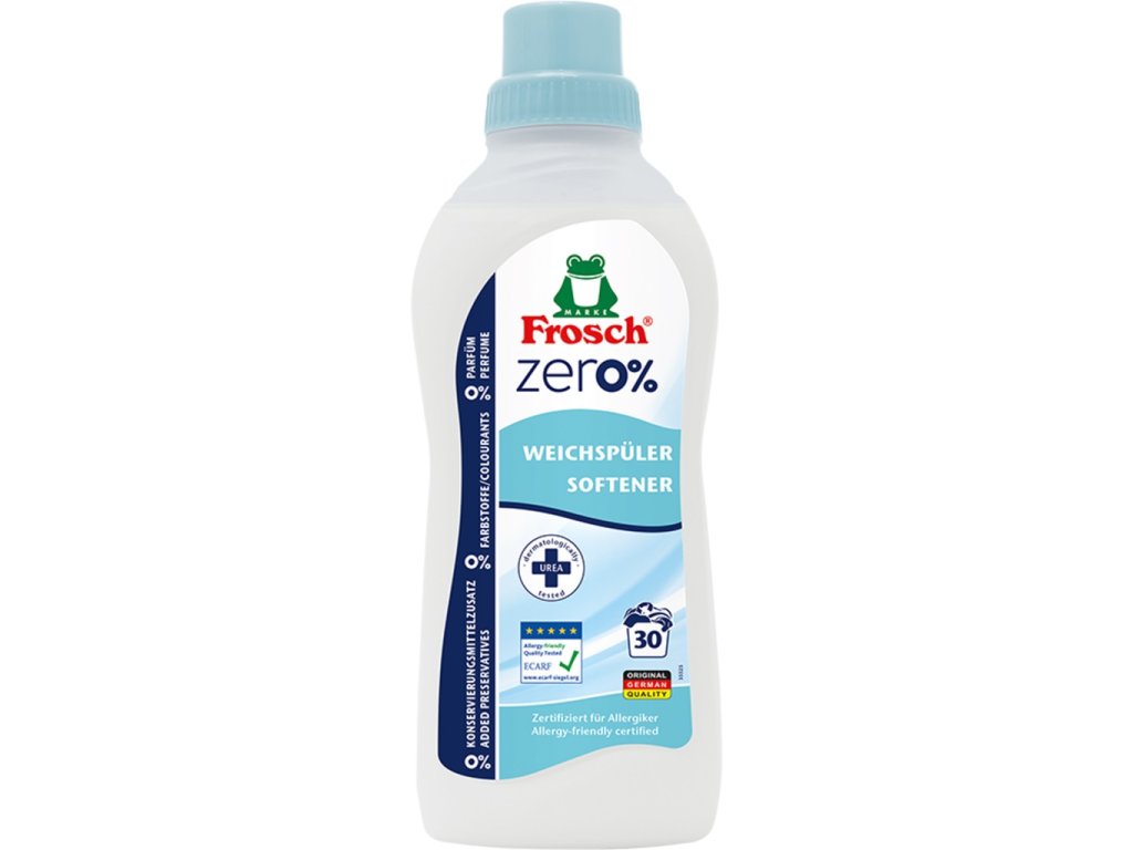 Frosch Hypoalergénna avivážobsahuje účinné látky na čisto prírodnej báze. Ošetruje tak a chráni textilné vlákna prírodným spôsobom a zachováva prirodzenú priedušnosť prádla. Neobsahuje dráždivé parfumované zložky, farbivá a konzervanty pre maximálne zníženie rizika podráždenia pokožky či alergií.