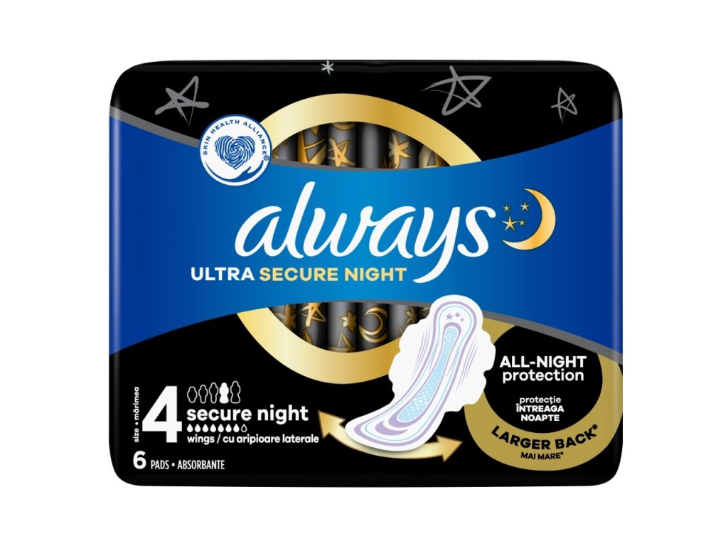 ALWAYS Ultra Hygienické Vložky Secure Night s krídelkami veľkosť 4 - 6 kusov