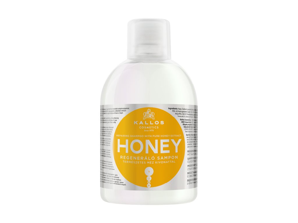 - Klasický šampón Kallos KJMN Honey pomáha udržiavať vlhkosť a lesk vlasov pri hlbokej regenerácii poškodených vlasov.