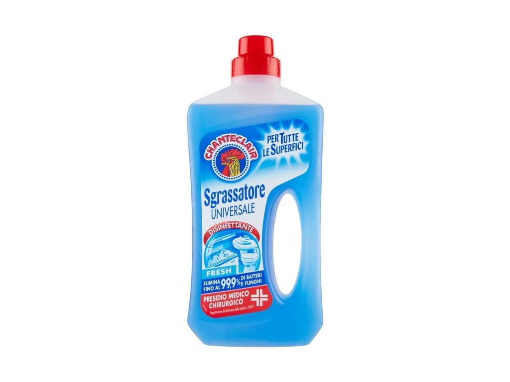 Univerzální desinfekční přípravek a odmašťovač Chanteclair Sgrassatore Disinfettante Fresh kombinuje odmašťovací i desinfekční účinek všech velkých i malých omyvatelných povrchů. Odstraňuje silné nečistoty a bakterie až z 99,99 %. Všestranné použití: na podlahy, kachličky, koupelny, kuchyně a sanitu. Svěží vůně příjemně provoní veškeré čištěné povrchy. Dovoz Itálie.