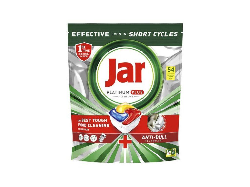 Kapsuly do umývačky riadu JAR Platinum Plus Lemon sú ideálnym riešením na odstránenie odolných zvyškov jedla. S technológiou Anti-dull odstraňujú matnosť a obnovujú pôvodný lesk vášho riadu. Sú účinné aj pri krátkych cykloch, čo vám ušetrí čas, energiu a vodu v porovnaní s bežnými cyklami. Vďaka zabudovanému systému predbežného umývania nemusíte riad vopred umývať. Tento prostriedok obsahuje aj zabudovanú pomocnú funkciu soli a leštidla, vrátane ochrany skla a striebra. Balenie obsahuje 54 kapsúl.