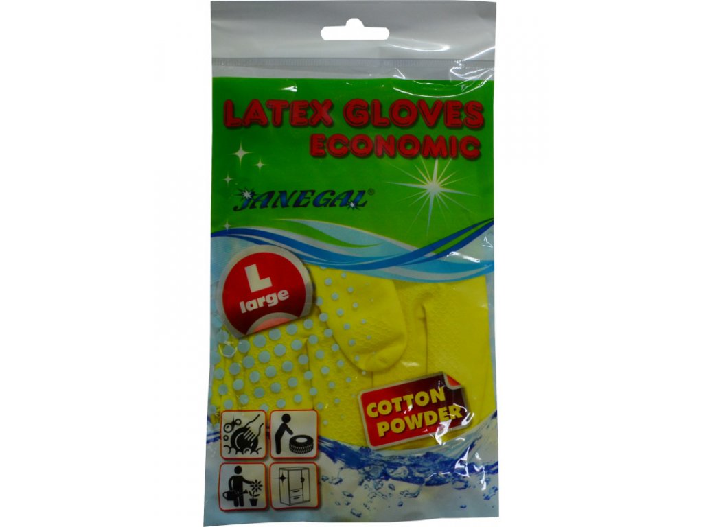 Latexové rukavice pre domácnosť s bavlneným prachom pre ľahké navliekanie. Dezén na dlani a prstoch napomáha bezpečnému uchopeniu predmetov.