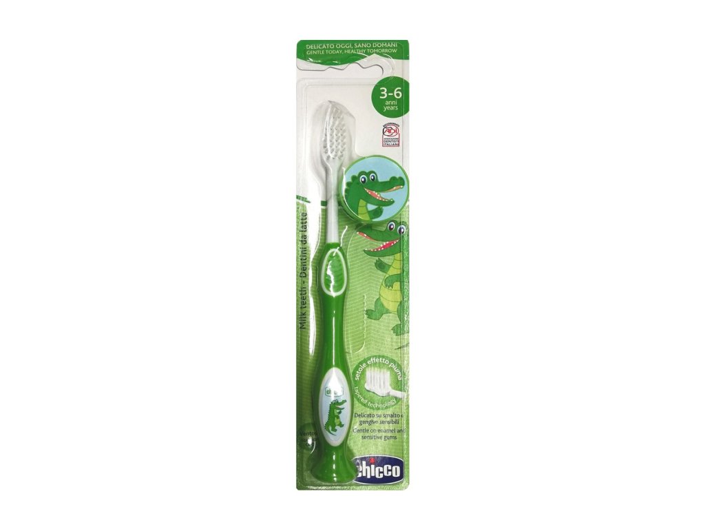 Chicco zelená zubná kefka 3-6 rokov + plastový kryt
