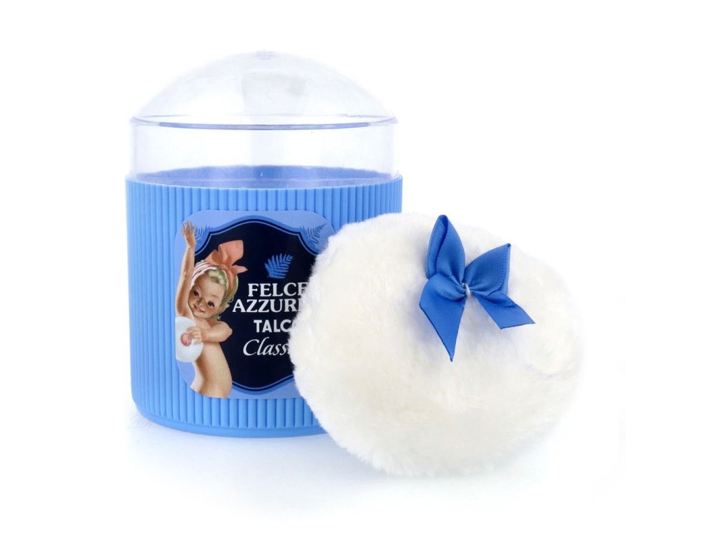 Telový púder Felce Azzurra, je úplne prírodný produkt, bez prídavku konzervačných látok a farbív. Vhodný na parfumaciu pokožky po kúpeli alebo sprche, zanecháva pokožku hladkú a hodvábnu. Vôňa: Classico. Obsah: 200gr.